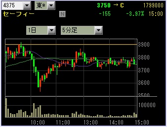 | ジャスダック平均 | ▲42.80 | 3,959.24 | 3,925.65 | 12:55 | 10:34 |